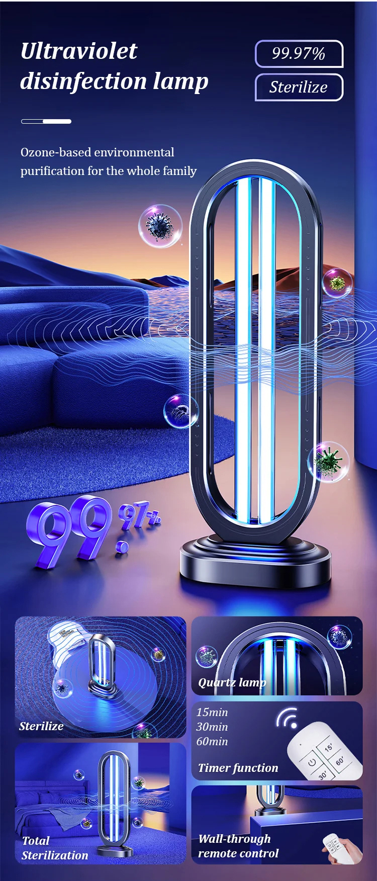 【Keep Fresh for 24 Hours】Home Sterilization and Purification Lamp