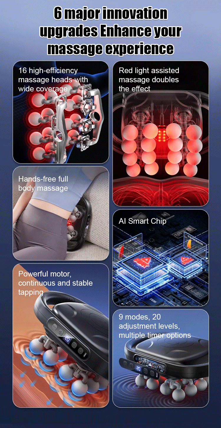 💦3-Second Instant Relief: Eliminates muscle tension immediately with 16 specialized massage heads. 💫Power remains stable and effective even after intensive use. Visible 60% increase in muscle flexibility after just 2 weeks of use!💯
